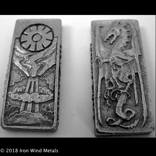 Sold by the ounce and that the approximate number of coins in an ounce is 4. Metal used in casting is Zinc and the coins are finished. Supplied unpainted.
